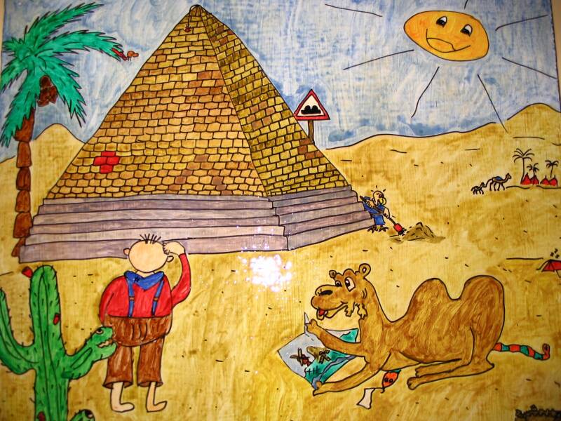krastechniek: eerst was alles bont (wasco), daarna werd alles zwart (wasco of plakkaatverf) en toen kwam door krassen dit en dat en ook dit kleurrijke, verrassende tevoorschijn! :)